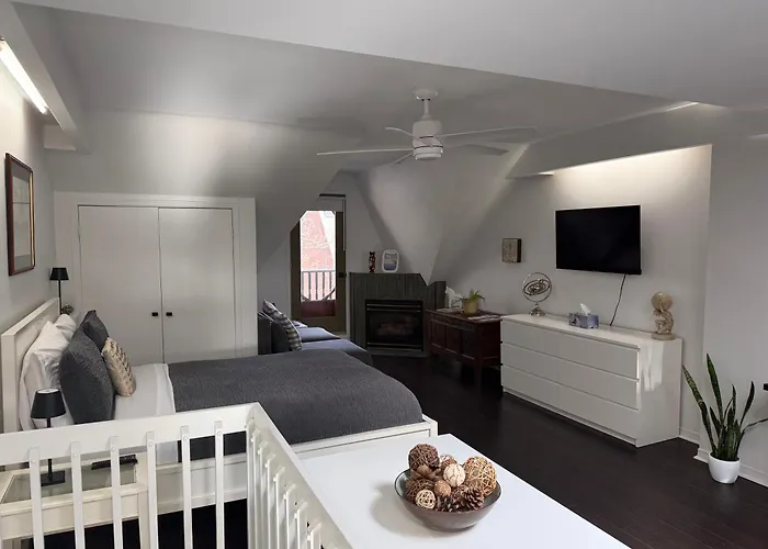 To enjoy your vacation in Toronto, stay at the spacious 60 m^2 Bright, Private, Peaceful Suite With Retail Conveniences Steps Away Toronto, which is only 1.3 km from Allan Gardens Conservatory and around a 10-minute drive from Hockey Hall of Fame. To explore the area, guests can rent bicycles offered on site.